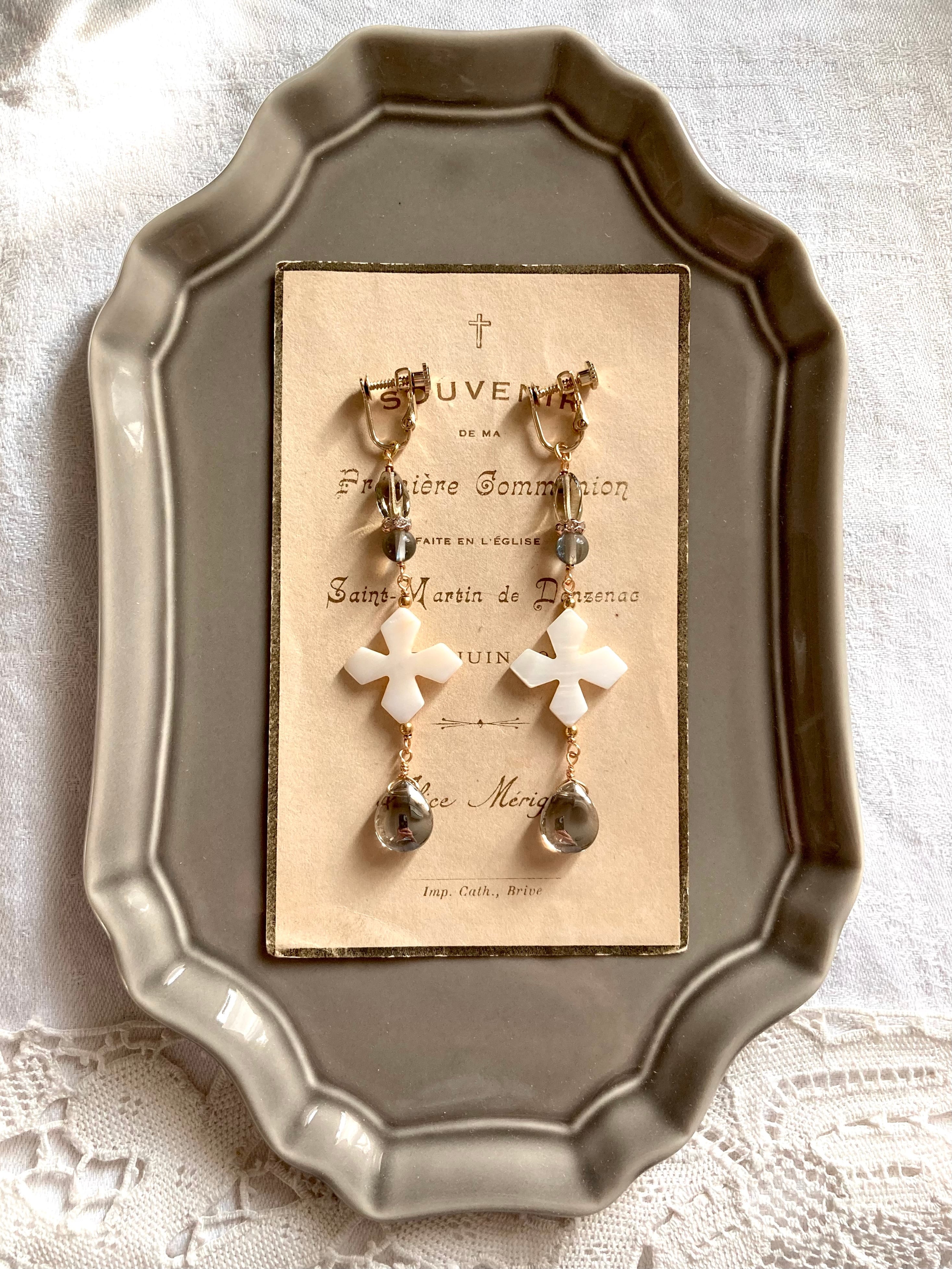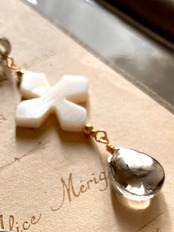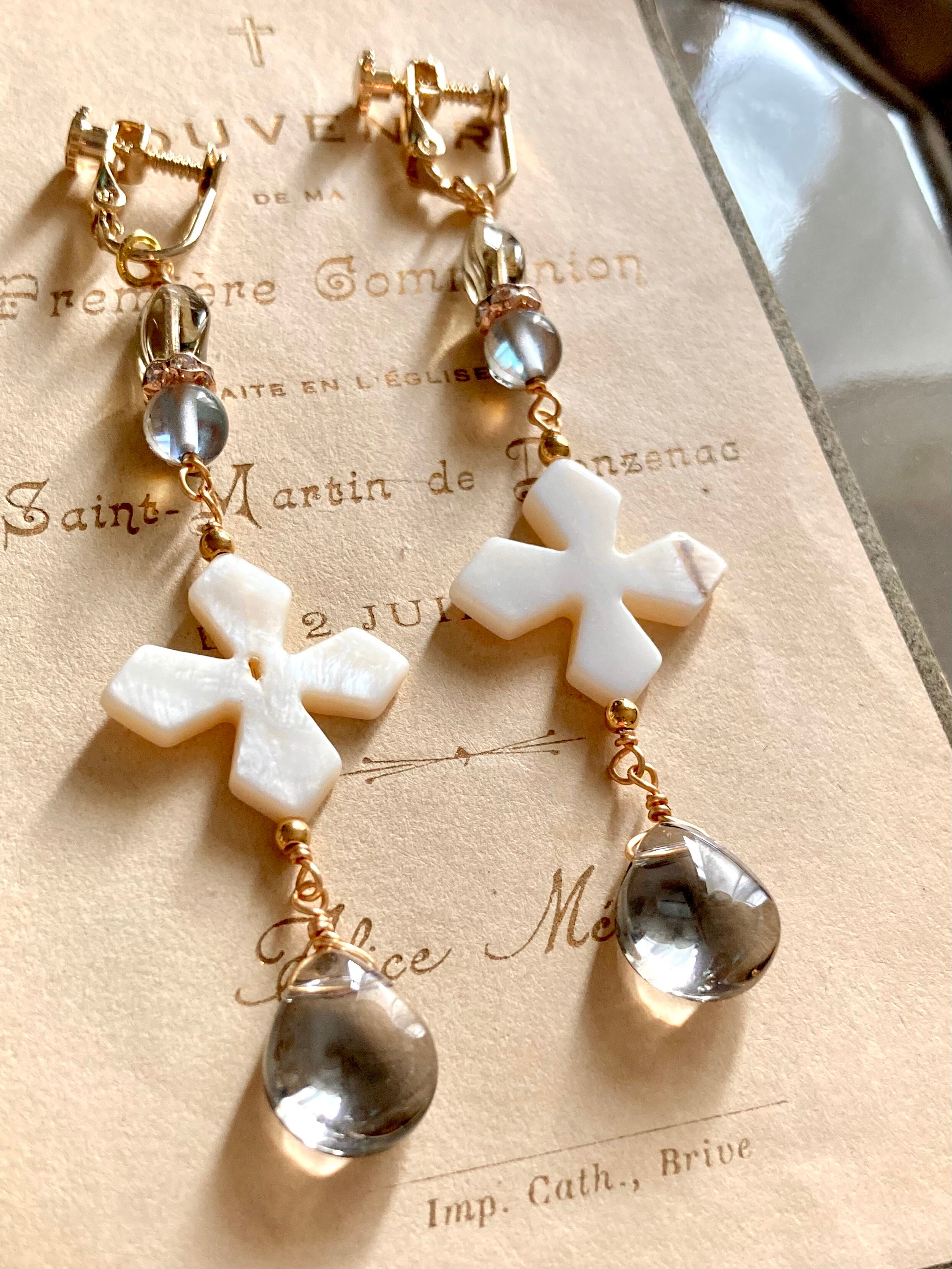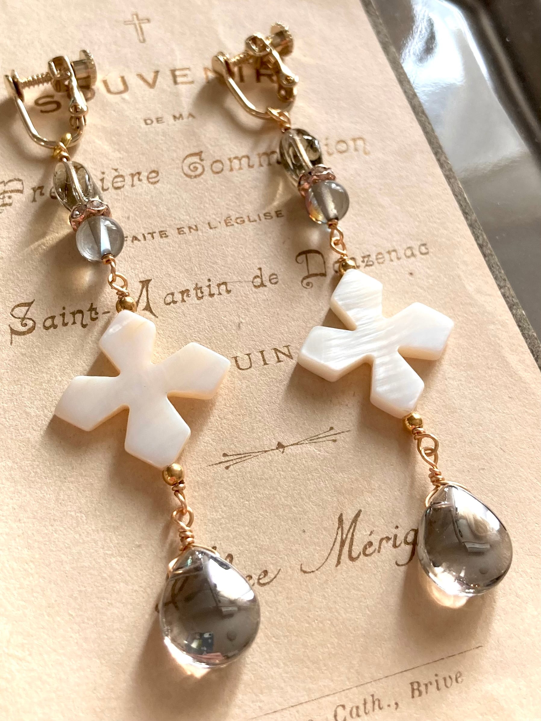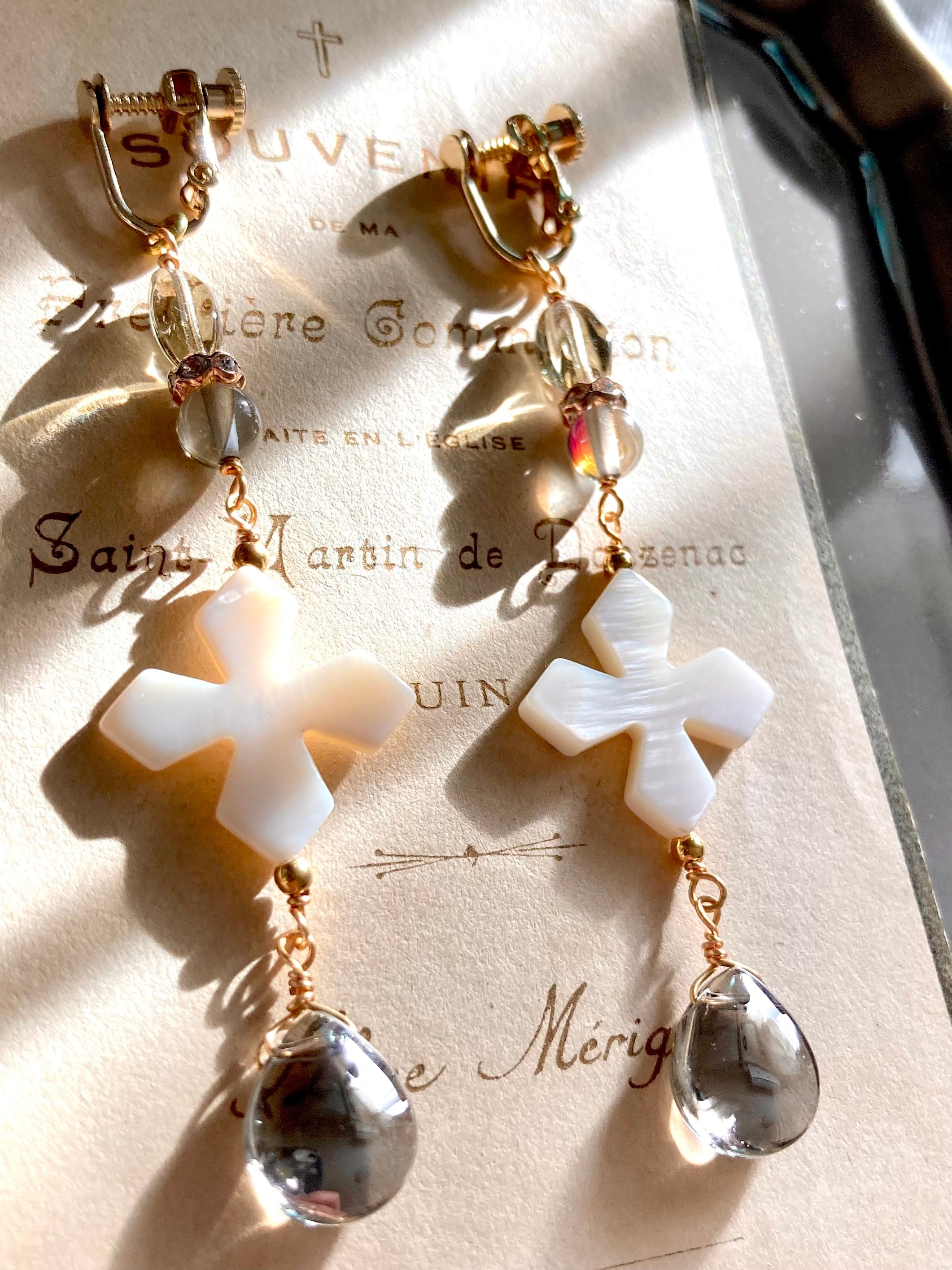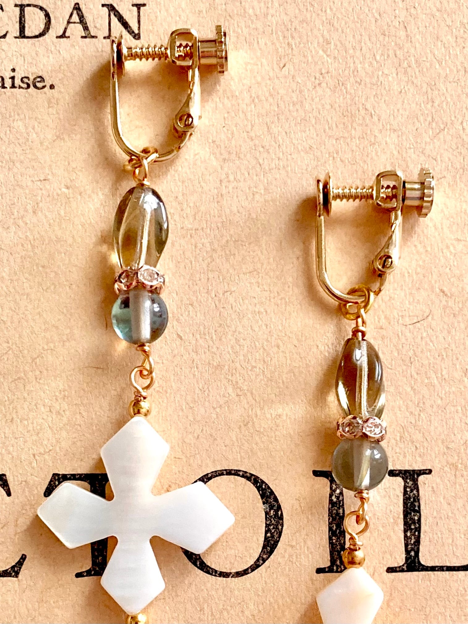 白蝶貝クロス/ガラスビーズ/ラインストーン/金メッキ金具